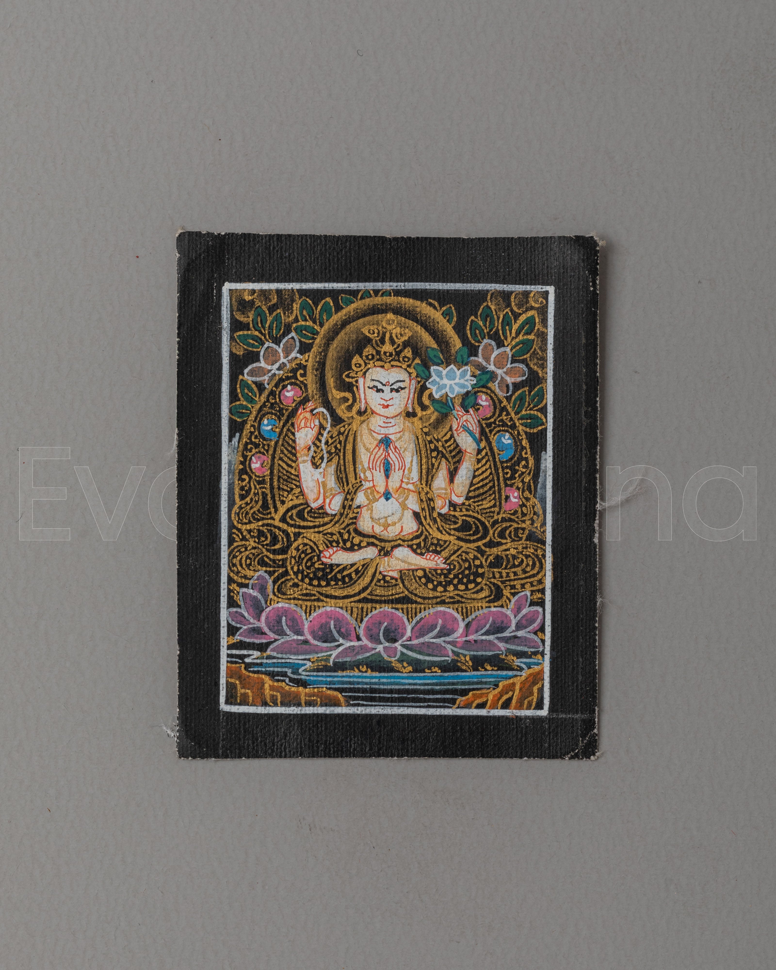 Tibetan Chenrezig Thangka for Locket | Symbol of Compassion