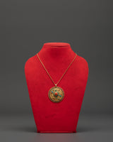 A Buddhist locket is a piece of jewelry designed to hold a small prayer, mantra, or image related to Buddhist practice. The locket may feature a design or image of a Buddhist deity, such as the Buddha, or a representation of a sacred symbol, like the lotus flower. It is typically worn as a talisman to remind the wearer of their spiritual path and to offer protection. Some Buddhist lockets are also used as a form of religious devotion and are frequently given as gifts to friends and family members to provide them with spiritual support and blessings.
