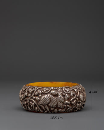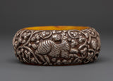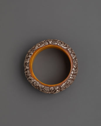 Tibetan Silver Plated Bangle | Carved Resin Jewelry