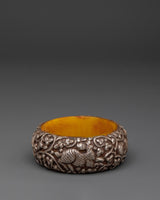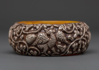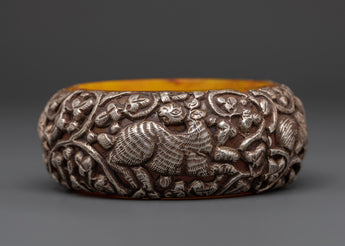 This Tibetan Silver-Plated Bangle with Carvings is a unique blend of artistry, tradition, and spiritual symbolism. Handcrafted with care, the intricate carvings on the bangle make it not only a beautiful jewelry piece but also a meaningful talisman. Designed with Tibetan motifs, it serves as a spiritual accessory for meditation, rituals, or as an elegant everyday bracelet.