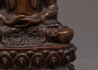 Our Amitabha copper statue will be an incredible addition to your vintage collection. This model was made around 2003. We have guaranteed that the condition actually stays true and extraordinary. We respect and regard the sentimental upsides of these valuable things and have taken care of it in the best way. We trust this will be a significant present for you too.
