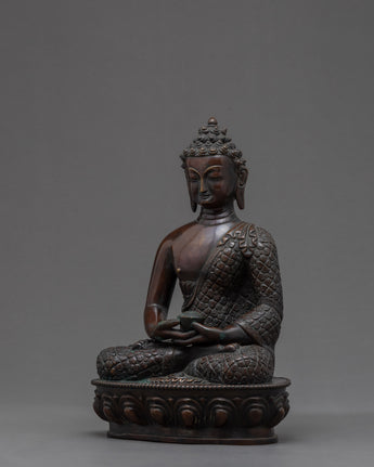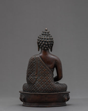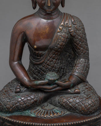 The hand-carved Amitabh Buddha Statue holds an eternal Life Nectar Vase. The Infinite Life Buddha's serene visage in the statue is seated in a vajra stance on a lotus seat. We have used a body made of pure oxidized copper and acrylic paint to give the statue a beautiful look.