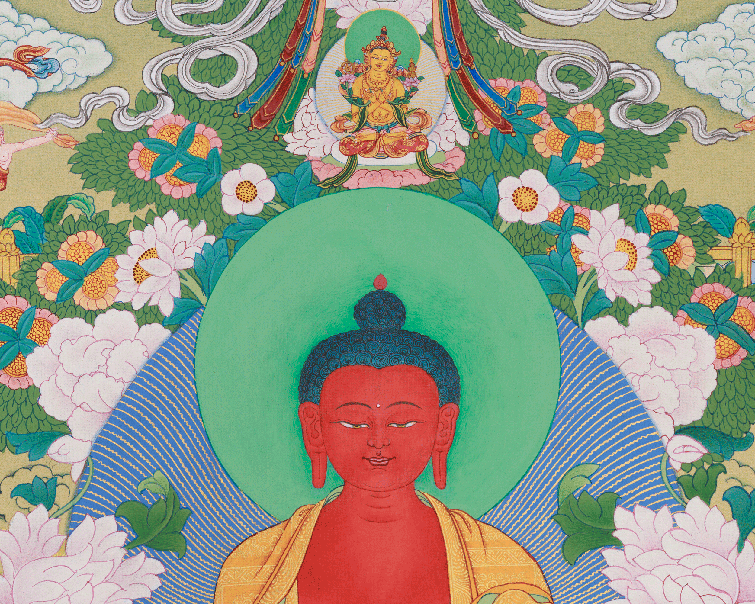 Amitabha Singham Thangka | The Buddha of Boundless Compassion and Light