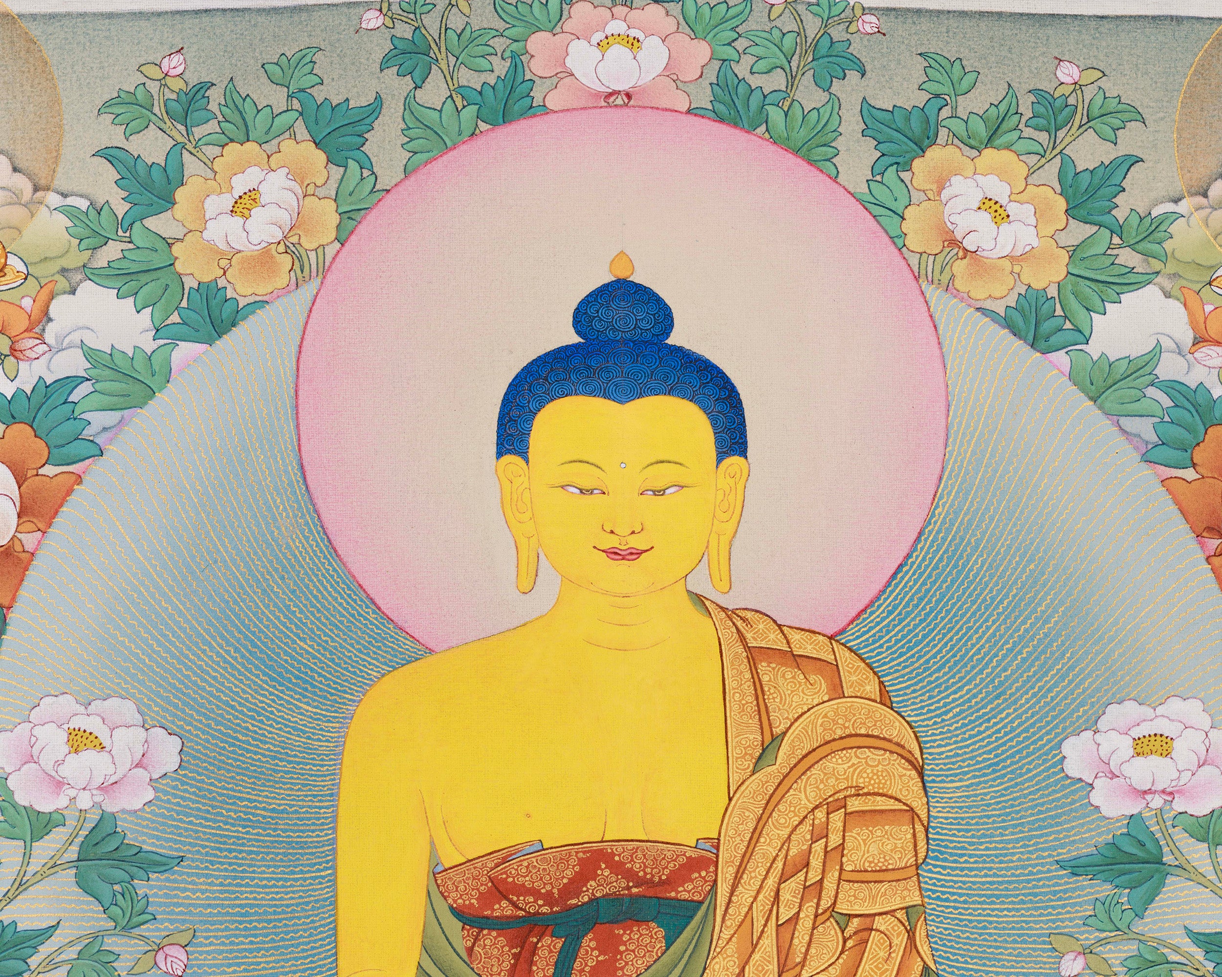 HAND-PAINTED WITH NATURAL LHASA STONE COLOR AND GENUINE 24K GOLD IN TRADITIONAL KARMA GADRI STYLE