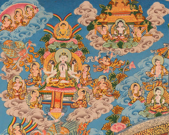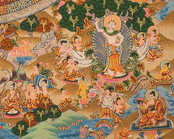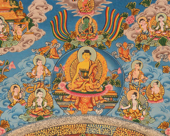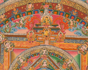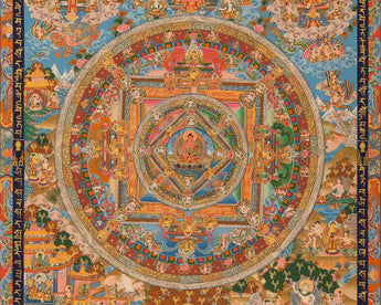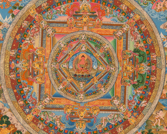 Buddha life Mandala With Buddhist Mantra Border | Unique Hand Painted Tibetan Art