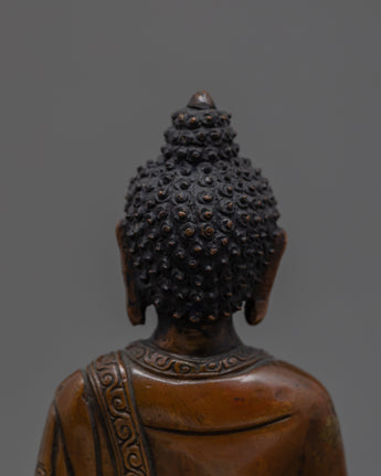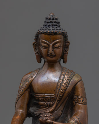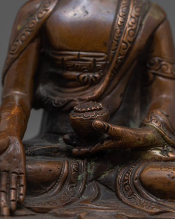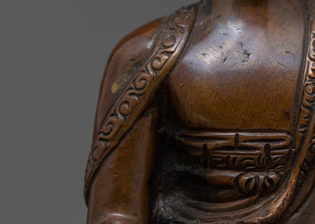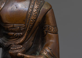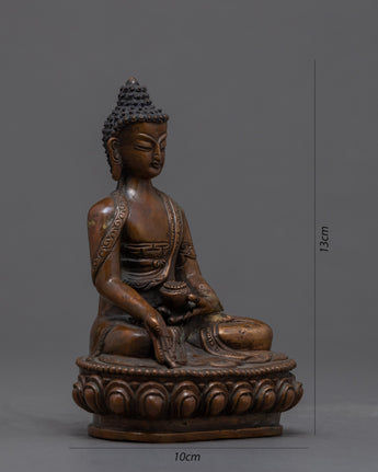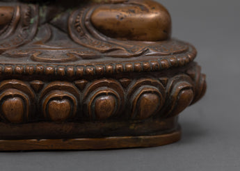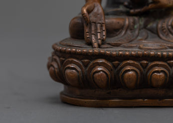 This vintage statue is a minifigure of Ratna Sambhava , which is nearly 22 years old and still has the best shape. Its portable height benefits you and you don't have to interrupt your daily meditation ritual. It is made of copper and all details are hand-carved for a perfect finish. You can display it at a ceremonial shrine or carry it with you if you travel frequently.