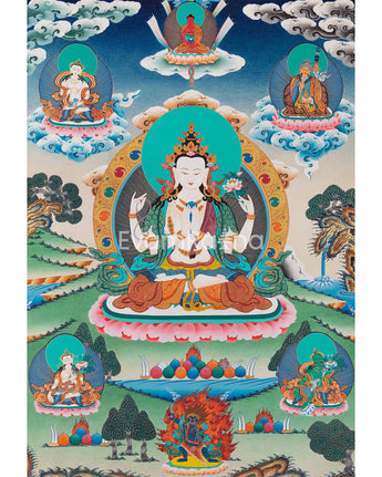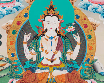 Chengrezig Handmade Original Thangka | Bodhisattva Avalokiteshvara