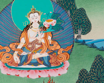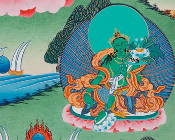 It goes without saying that every detail of a painting has a symbolic meaning. Regardless of your religious affiliation, a thangka can help you on your path to enlightenment, whether you practice Buddhism or have other religious convictions. Thangkas are paintings that depict deities with various iconographic elements and symbolism that encourage meditation on the teachings of the god they depict. Any thangka is intended to aid in the removal of the film of ignorance, which is a significant barrier to the road to enlightenment. The Thangka is revered as a holy item. They promote positivity, spread Buddhism's teachings, bring about peace, harmony, and oneness, and dispel any negative energy that may be there.