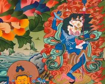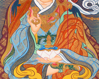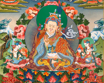 Guru Rinpoche is also known as Guru Padmasambhava. He is an important figure in Buddhism who was instrumental in establishing Vajrayana Buddhism in Tibet around the 8th century. He is also manifested as one of the greatest sages of the Vajrayana Buddhist world.