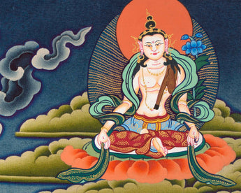 A thangka is a classical and stylized form of Nepalese and Tibetan painting. The art is explicitly religious, all symbols and allusions must be in accordance with strict guidelines laid out in Buddhist scripture. It is painted with the use of gold and other various natural colors.