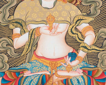 Our thangka is a hand-painted Vajrasattva Thangka painting. It is beautifully detailed with natrual stone color and 24K gold. This is a small in size thangka and will perfectly fit into your shrine.
