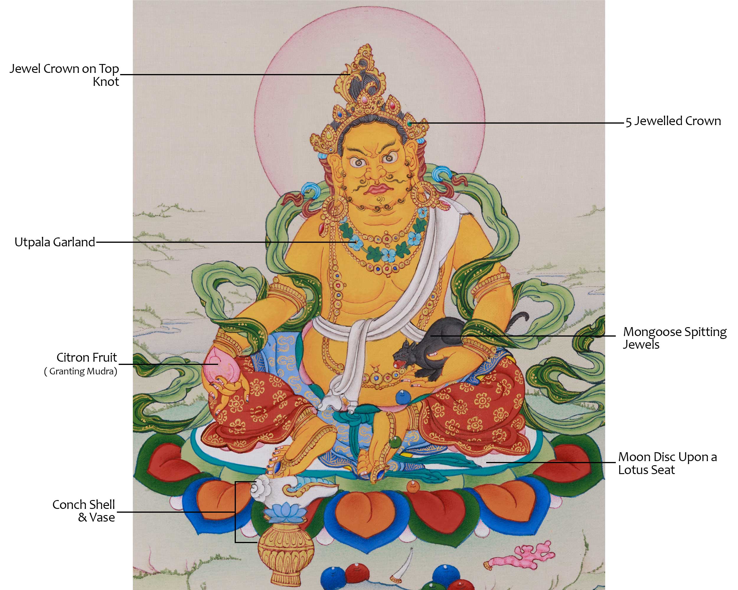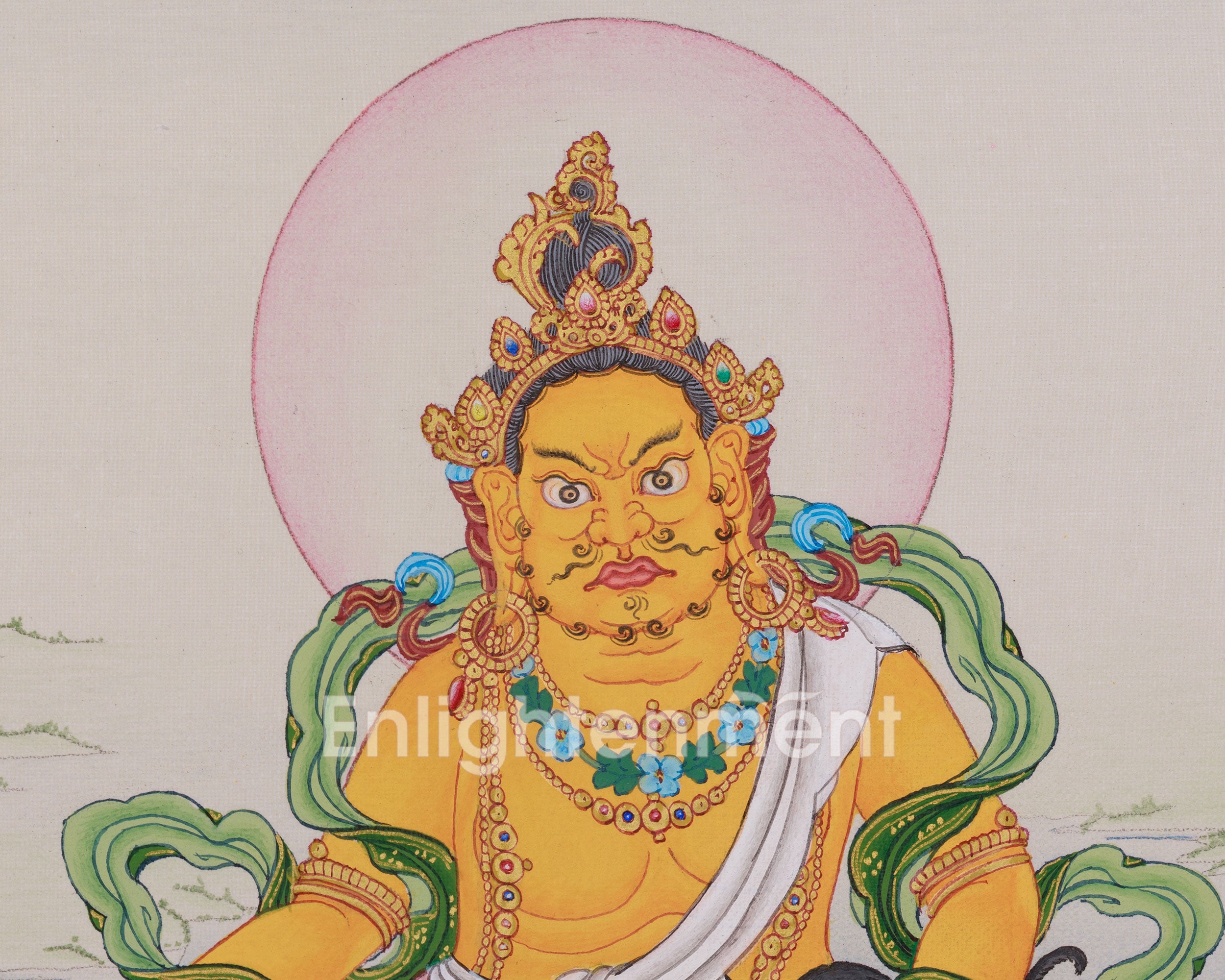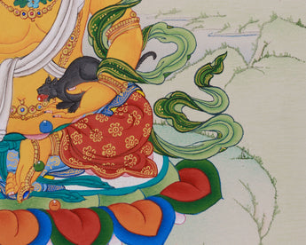 Authentic Hand-Painted Yellow Dzambhala Thangka | The Divine Protector and Bestower of Material and Spiritual Wealth