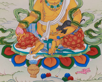Hand-Painted Yellow Dzambhala Thangka | The Buddha of Prosperity and Fortune