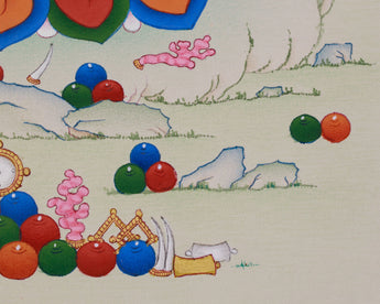 - Regularly inspect your thangka; examine the borders and all attachments.