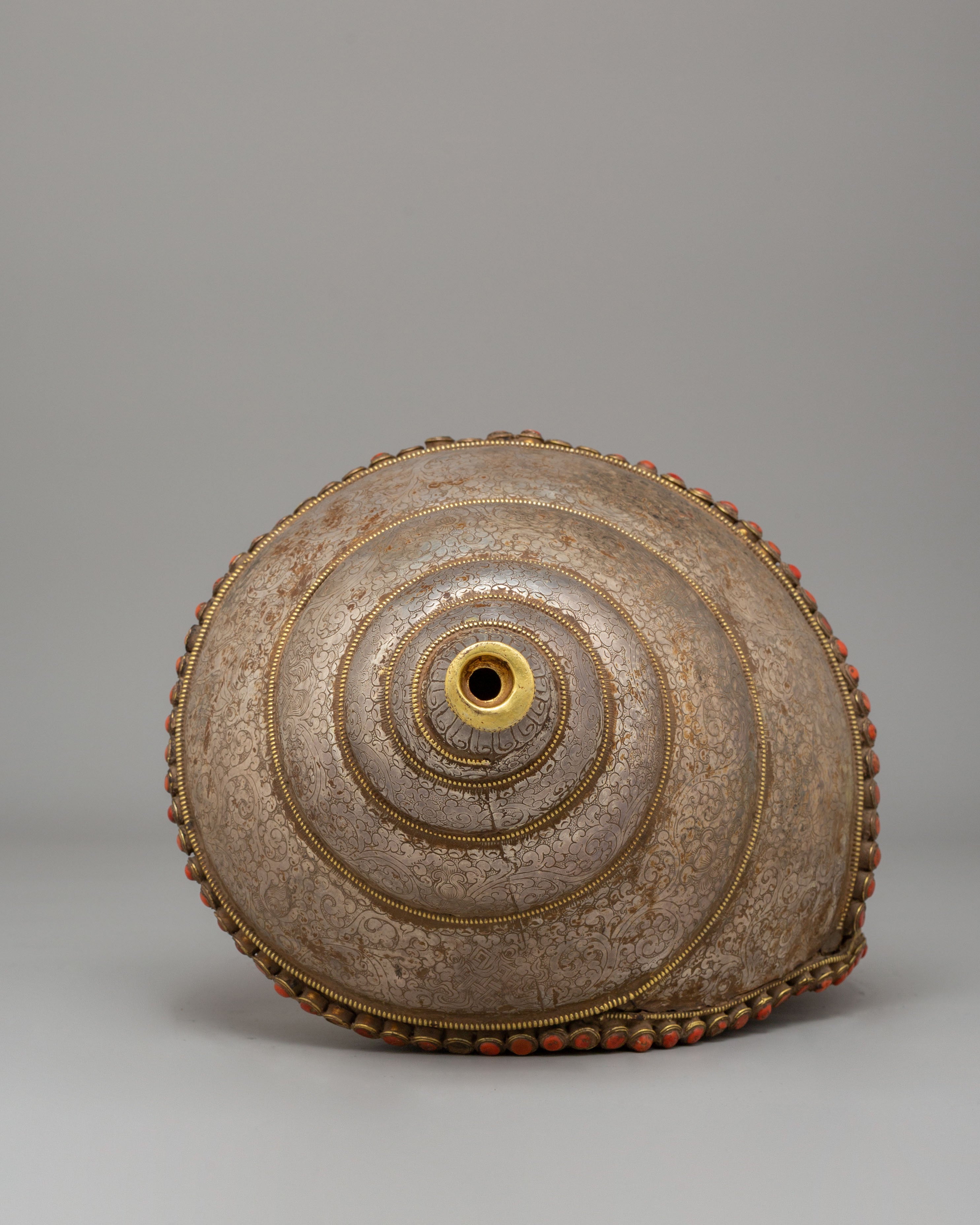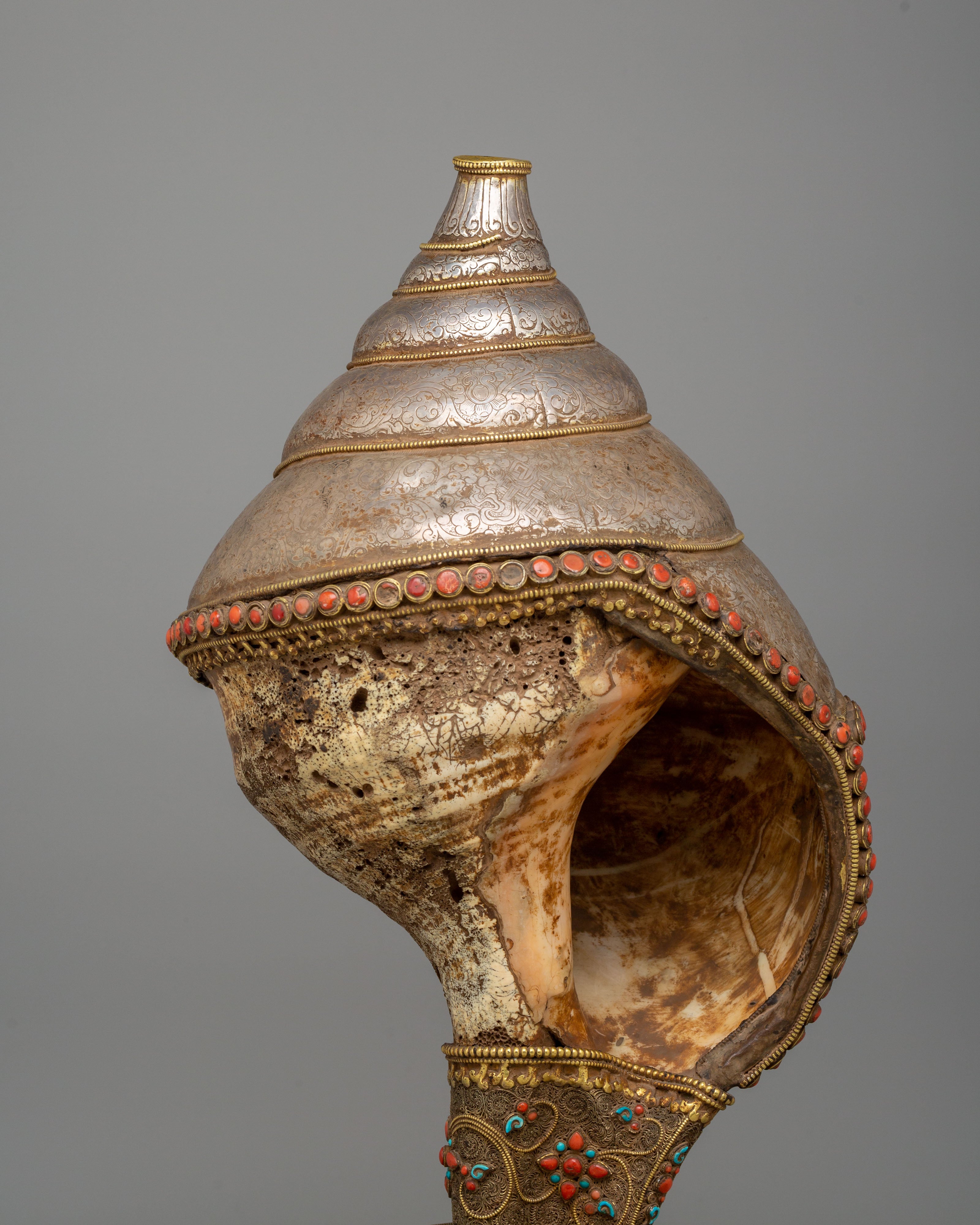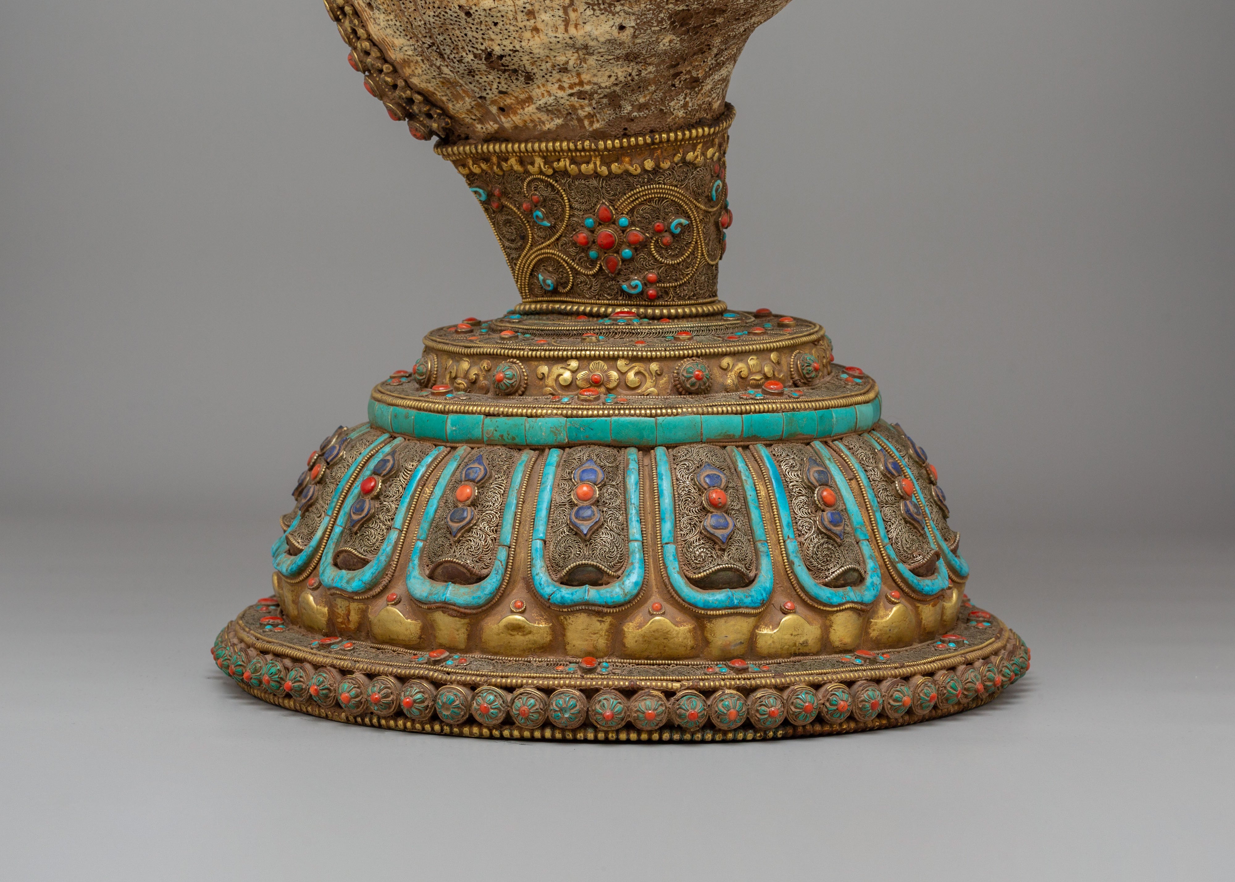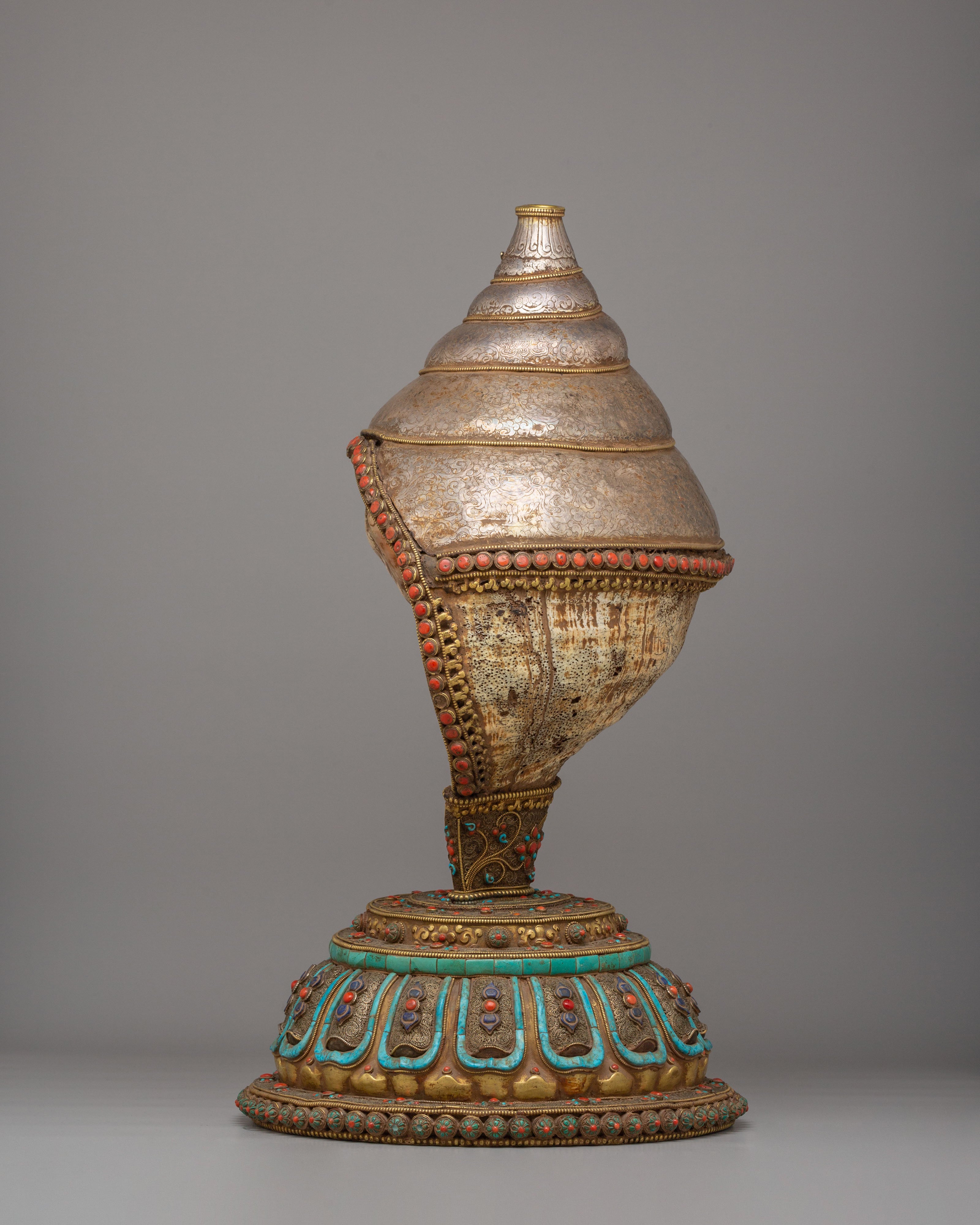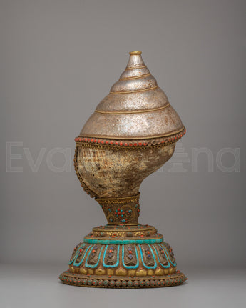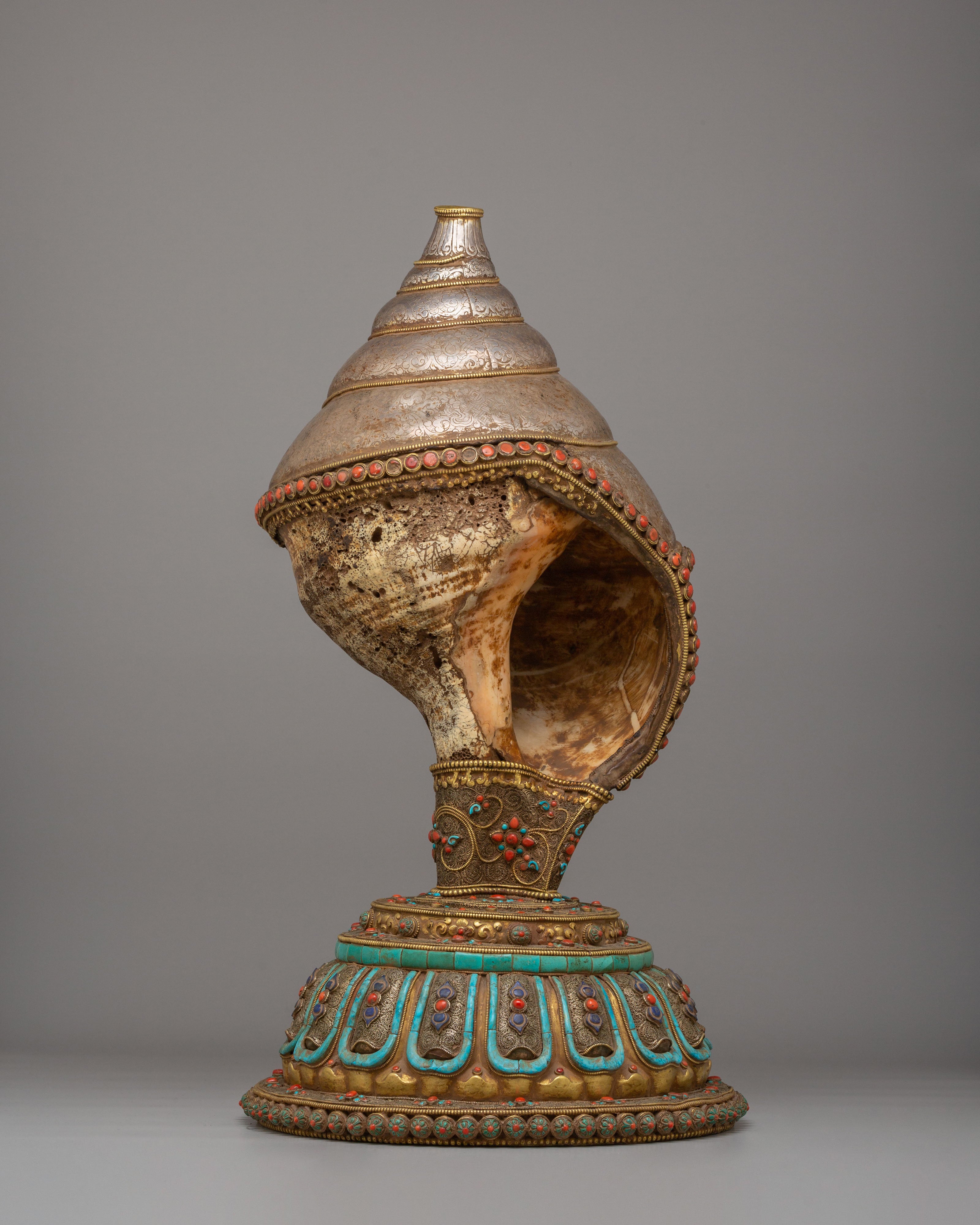 Rare Decorative Sankha with Base | Silver Filigree Gemstone Artwork