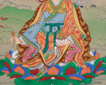 Invite the wisdom and blessings of Guru Padmasambhava into your life—order this handmade thangka today and transform your space with his divine energy.