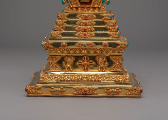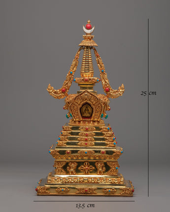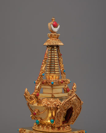 Himalayan Sacred Ritual Stupa | Handcrafted Gold-Plated Copper Art