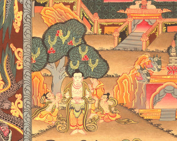 Miraculous Life Events Siddhartha Gautama Buddha | Hand Painted Thangka Art