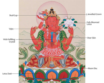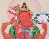 This Red Chenrezig with Consort thangka is a living symbol of spiritual awakening and divine unity. Invite it into your home or meditation space to welcome the blessings of compassion, harmony, and transformation.