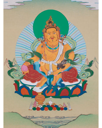 12-Inch Dzambhala Thangka | Buddhist Wealth Deity Who Brings Abundance and Prosperity