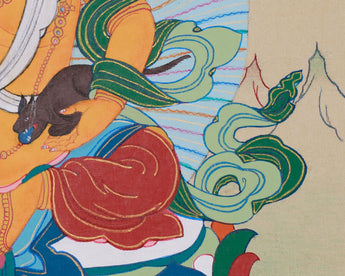 Sacred 12-Inch Dzambhala Thangka | The Tibetan God of Wealth, Fortune, and Generosity