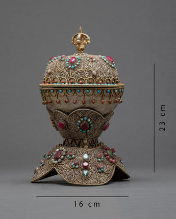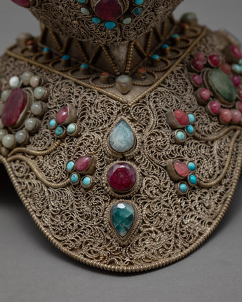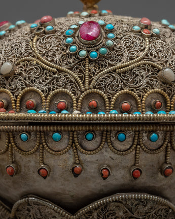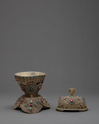 In Tibetan Buddhism, the Kapala or Skull Bowl is used ritually in several ways.The skull bowl, known as Kapala in Sanskrit, is fashioned from the oval upper section of a human skull. It serves as a libation vessel for a vast number of Vajrayana deities. Kapala holds the nectar used for performing higher esoteric rituals used during higher tantric meditation.It offers liberation to gods and deities to ensure their devotion.