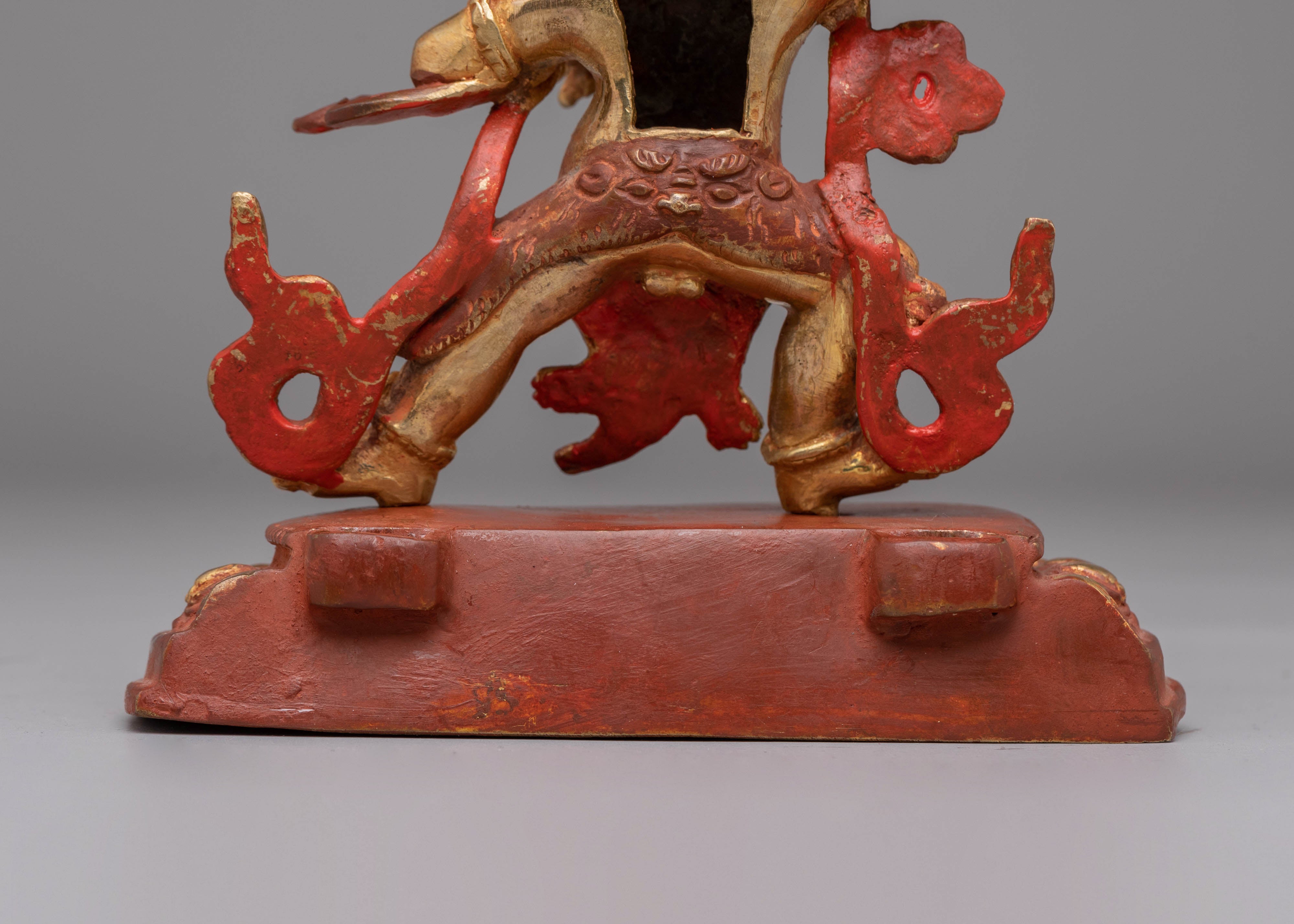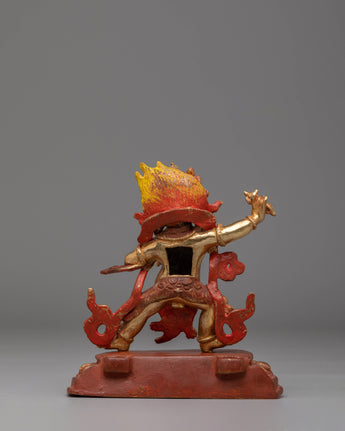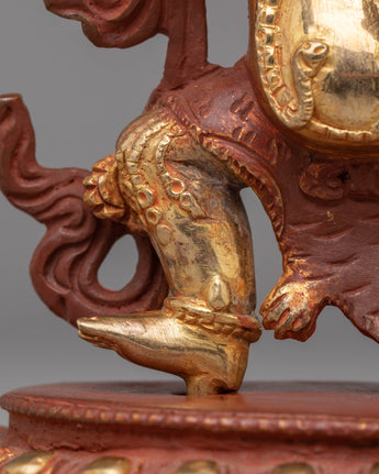 The design of the Vajrapani Statue is meticulously detailed, showcasing his dynamic pose as a fierce protector, holding the vajra in one hand and gesturing in a protective mudra with the other. The 24K gold plating enhances the figure's sacred presence, imbuing it with an aura of spiritual power. The acrylic colors used for the robes and other accents add vibrant details to the statue, making it visually captivating while maintaining its deep spiritual meaning. The statue’s copper body adds to its durability, creating a lasting, meaningful piece for your spiritual collection.