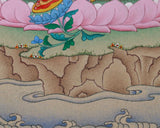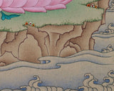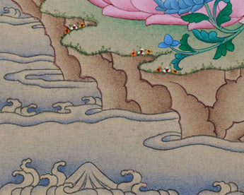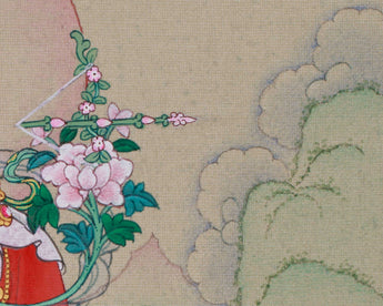 Discover the commanding presence of the Vajrayana Red Tara Thangka, painted by hand using natural stone pigments and 24K gold on cotton canvas. Created in the esteemed Karma Gadri tradition, this thangka vividly portrays Red Tara with detailed craftsmanship and shimmering gold accents. The use of 24K gold emphasizes her divine energy and strength, making this piece not just a stunning work of art but also a spiritual tool for protection, healing, and transformation. It captures the profound wisdom and resilience of Red Tara, infusing your space with a sacred aura.
