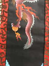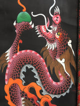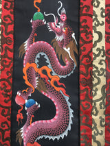 The following thangka was created in the most professional way utilizing natural colors taken from natural stones. The thangka depicts a dragon, a fabled mythical monster with brilliantly and creatively drawn decorations. Even the smallest details are meticulously executed in this thangka.