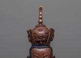 Explore the spiritual depth and stunning detail of our 10th Karmapa Choying Dorje Statue. This statue, which is 14.0 inches tall and has an oxidized copper body, is a gem of handiwork. The oxidized finish's fine details accentuate the textured robes, the calm demeanor, and the traditional symbols held in each hand—all of which are symbolic of the Karmapa's creative and spiritual authority. Known for his artistic abilities and contributions to the Karma Kagyu lineage, this statue is a symbol of Tibetan fine art as well as a spiritual icon.