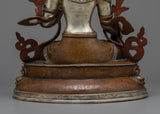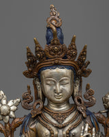 13.3" White Tara Statue | Silver Plated Figure Long Life Goddess