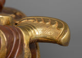Crafted from high-quality oxidized copper, the sculpture exudes elderly knowledge and time-honored traditions. The oxidation process gives the statue a rich, deep patina, lending it an air of ancient grandeur. A beautiful 24K gold gilding is put over the statue, emphasizing its regal and spiritual aspect. The gold gilding not only enhances the visual attractiveness but also represents Guru Rinpoche's spiritual riches and enlightenment.