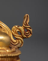 Handcrafted by expert artisans in Patan, Nepal, each detail is rendered with precision, adding to the statue’s spiritual and aesthetic appeal. The luminous gold finish and vibrant paintings enhance the statue’s divine presence, making it a significant addition to any meditation space or shrine.