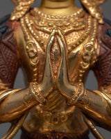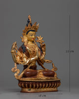 4-Armed Bodhisattva Chenrezig Statue | Gold Gilded Copper Art from Nepal