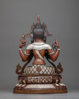 4-Armed Chenrezig Copper Statue | A Silver-Plated Vision of Compassion