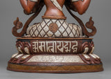 Our 4-Armed Chenrezig Copper Statue is a stunning depiction of the Tibetan Buddhist Bodhisattva of Compassion. This statue embodies loving-kindness and a monument to artistic craftsmanship, standing at a considerable 20 inches in height and with a base of 14.1 inches.