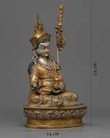 This 9.4" antique finish Guru Rinpoche statue is a one-of-a-kind depiction of the Tantric Buddhist Master. It is an excellent addition to any Buddhist collection, with silver plating coated in golden details and lifelike characteristics.