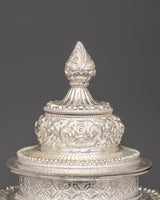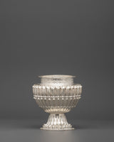 Crafted with precision and care, this handcrafted silver rice pot enhances the spiritual ambiance of any space while serving as a poignant reminder of the blessings bestowed upon us. Whether making small daily offerings or partaking in elaborate ceremonial activities, the pot's sacred energy can help you invoke peace, protection, and harmony. It is an essential component of Tibetan Buddhist traditions, Hindu rites, and other spiritual practices, and is frequently used to praise deities, seek blessings, and express gratitude for abundance. This gorgeously crafted ceremonial offering vessel is an ideal addition to any spiritual collection and perfect for your home altar. Meditation room, or a meaningful present for individuals who value traditional rituals. Bringing this 98% silver rice pot into your home can provide spiritual protection, prosperity, and benefits in your life.
