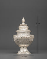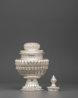 This 98% Silver Rice Pot for Ritual Offering is a stunning handcrafted Buddhist altar vessel created to store precious offerings during various religious and spiritual rites. Standing 21 cm tall and 12 cm wide, this exquisite work of spiritual art gives an air of elegance and devotion to your spiritual altar decor. The rice pot has long been associated with plenty, purification, and success in several spiritual traditions. In Buddhist and Hindu rituals, this pot is a sacred vessel for offerings, typically rice or grains, to invoke blessings, good fortune, and heavenly protection. It symbolizes gratitude, fostering a profound sense of humility and connection to the divine.