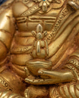 Guru Rinpoche, also known as Padmasambhava, is a legendary Buddhist Master and highly revered figure in Tibetan Buddhism, standing at a height of 6.3 inches (16 cm) with a base of 3.9 inches (10 cm). Crafted with meticulous attention to detail, it is adorned with 24K gold gilding that highlights its divine beauty, complemented by gold and acrylic paintings that enhance its vibrant and sacred appearance. The statue copper body provides a sturdy and durable foundation, making it a timeless piece of spiritual art.