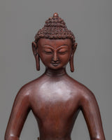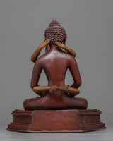 The oxidized copper figure, masterfully created, has an ancient and timeless appeal. The oxidization technique imparts a distinct and rich patina to the sculpture, accentuating the exquisite depiction of Adi-Buddha Samantabhadra and his wife in a harmonious Yab Yum position. With its substantial weight and size, this sculpture serves as a strong focus point in any room dedicated to meditation, spiritual reflection, or as an exquisite addition to your home decor.