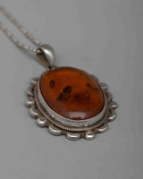 Silver Amber Pendent | Classic Beauty with a Touch of Nature