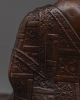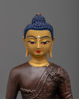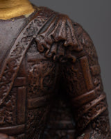 With our Small Amitabha Buddha Statue, you may bring awareness into your personal area. At 9cm tall, this machine-made sculpture brilliantly combines the worlds of technology and faith. The oxidized copper body, decorated with 24k gold and exquisite acrylic paintings, adds to this piece's ethereal beauty.