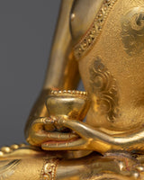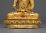 Introducing our "Amitabha Buddha 23cm statue, a dazzling representation of limitless light and life. This precisely created statue stands 9.1 inches tall and is composed of a robust copper body that has been gorgeously gilded with 24K gold, highlighting the peaceful demeanor and magnificent robes of one of Buddhism's most respected leaders. The statue is further enhanced with delicate gold and acrylic paintings that highlight the precise details of Amitabha's meditative position and calm temperament.