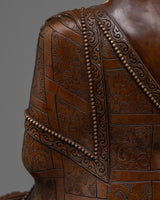 Invite the embodiment of infinite light and boundless compassion into your space with our Amitabha Buddha Artwork. Standing at a height of 13.7 inches and with a base of 9.2 inches, this statue is a perfect addition to your home, shrine, or meditation space. The statue is crafted from an oxidized copper body, adorned with 24k gold and acrylic paintings, reflecting the rich tradition of Buddhist craftsmanship and lending it a unique, antique finish.