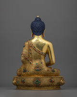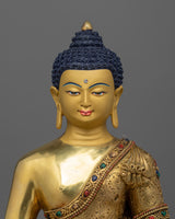 Experience the spiritual grace of the Amitabha Buddha Deity for Longevity, a stunning sculpture that stands 15.4"/39 cm tall, has a base width of 11.2"/28.5 cm, and weighs 7.87 kg. This sculpture is made of a copper body, delicately gilded with triple layer 24K gold, and embellished with elaborate gold and acrylic paintings, demonstrating outstanding artistry and commitment. Each detail demonstrates the amazing workmanship of Himalayan artisans, resulting in a spiritually profound and visually captivating work of art.