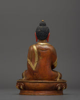 Amitabha is depicted seated in deep meditation, hands resting in the Dhyana Mudra, symbolizing concentration and the balance of mind. His calm expression invites inner peace and reflection, guiding practitioners toward spiritual awakening. The oxidized copper body adds a durable appearance, offering a visual and spiritual experience of tranquility and boundless light. This sacred figure is ideal for those seeking to connect with the energy of Amitabha and his Pure Land, Sukhavati, where enlightenment is easily attainable.
