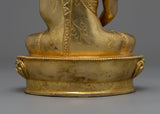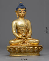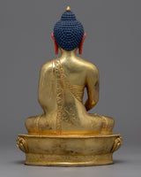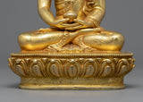 This small gold Amitabha Buddha statue was hand carved and exquisitely painted with genuine 24k gold. This sculpture took more than a month to complete. This is the magnificent art of Kathmandu valley artists, sculpted in our studio. Buddha is shown seated on a moon disc lotus seat with a calm and serene expression, holding an alms bowl in both hands. A practitioner like you will benefit greatly from the traditionally sculpted statue. This statue is ideal for anyone who appreciates the beauty of traditional art and wishes to bring peace and serenity into their home.