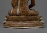 Our Amitabha Empowerment statue is a work of art that combines professional craftsmanship, spirituality, and aesthetic appeal. This stunning item, handcrafted from an oxidized copper body and embellished with silver plating, 24k gold, and superb acrylic paintings, brings the beauty of Nepalese artisanship into your spiritual space.