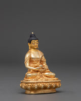Amitabha Buddha, the Buddha of Infinite Light and the guardian of the Western Pure Land, is exquisitely depicted in this statue of the Amitabha Guardian of the Western Pure Land. This statue, which is 9.5 cm tall and is composed of copper with a gorgeous gold plating, is a representation of kindness, knowledge, and spiritual defense. The calm and contemplative countenance of Amitabha represents his promise to lead all sentient beings to enlightenment and provide them with sanctuary in the Pure Land.